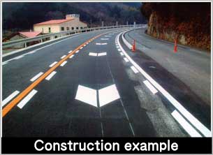 Although existing road marking materials are enhanced by increasing their hardness, they have problems such as easy cracking and slipping. On the other hand, ESUTERU LINE has attained improved flexibility and crack-resistance because of the fiber.