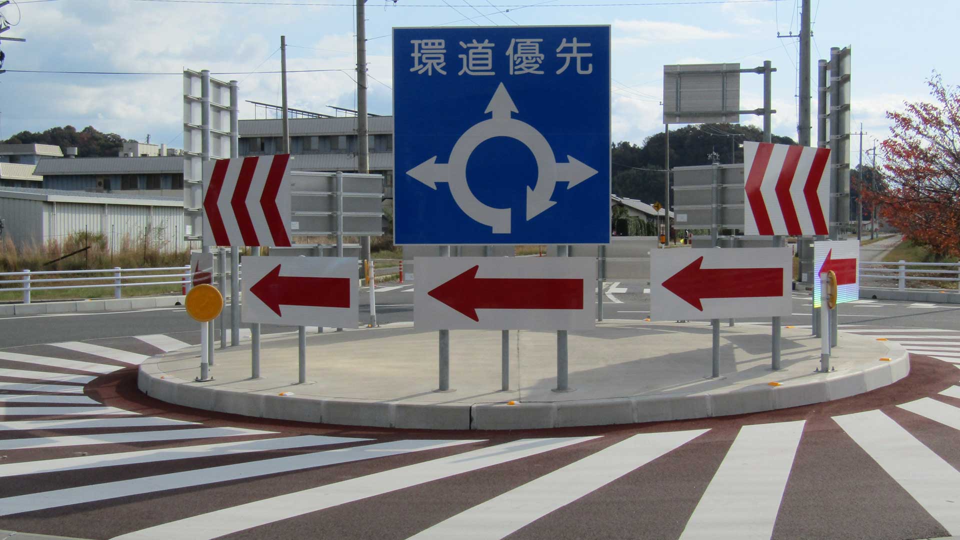 中四国で初めてとなる信号機の無い環状交差点「ラウンドアバウト」のライン工事を