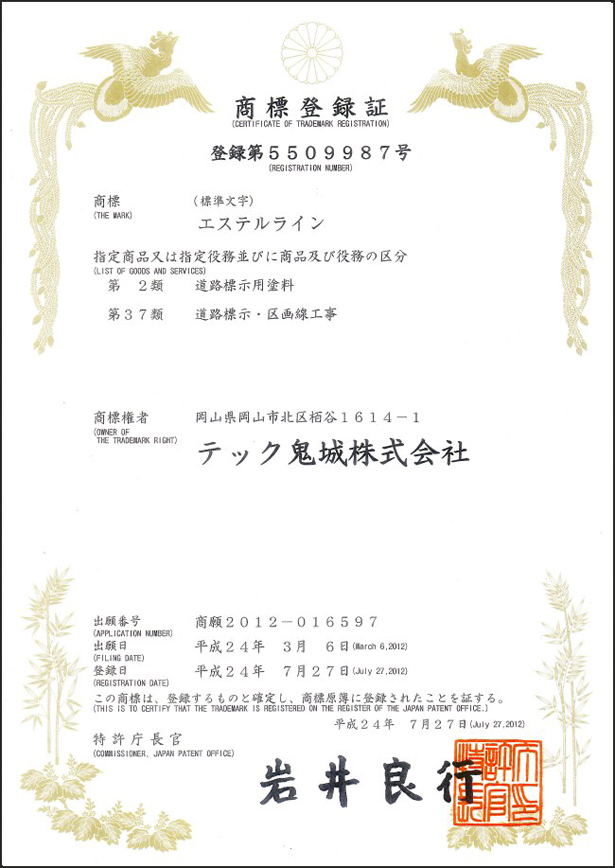 当社は一般・高速道路のライン工事を行い、施工技術と作業効率の高さを強みに得意先から高い評価を得ています。 特に、マーカー(区画線を引く機材)を自社開発する技術力に定評があり、これまでに透水性の道路標示、 トンネル専用ライン(FOライン)、高視認区画線オブリークライン(斜めに凸凹が入り、安全性を飛躍的に向上) など新工法を開発してきました。